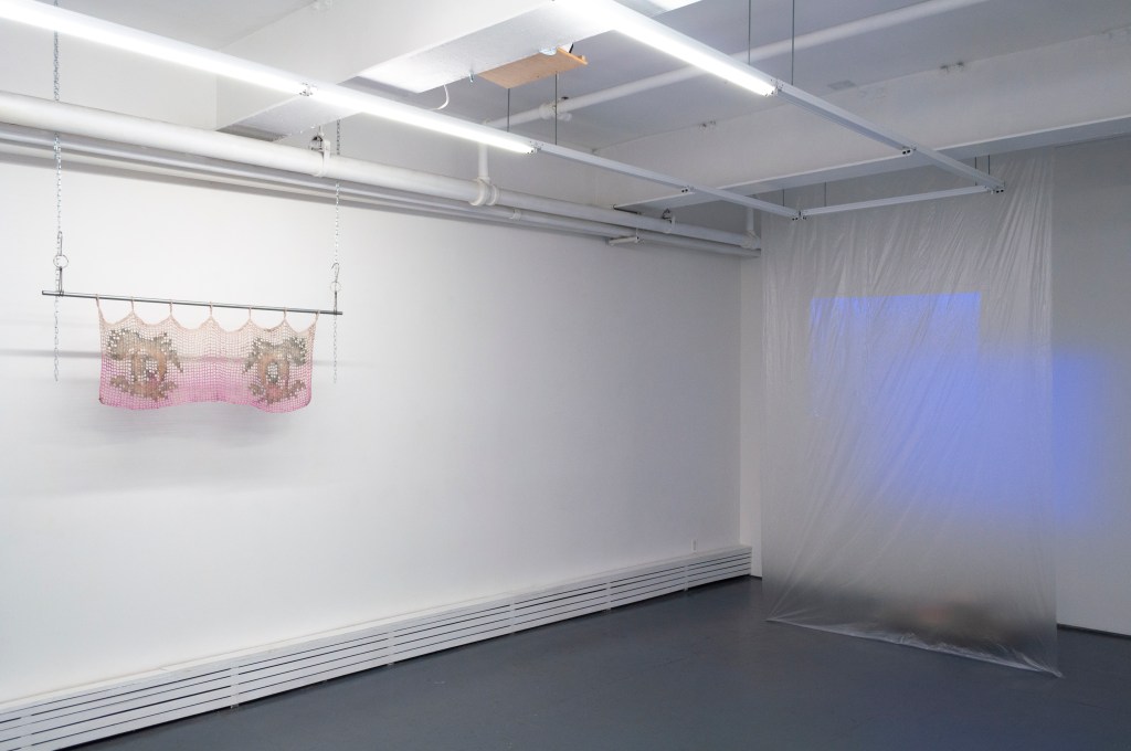 Given how the yellow woman has often been produced out of objectness, is retrieval or recovery futile, even as we dare to imagine it? Tiffany Jaeyeon Shin nurtures the wounds of fractured porcelain using milk, which contains casein proteins that act as a weakly biological bonding agent. Elliott Jun Wright assembles heavy signifiers such as face masks, dried anchovies, and jade; this ghostly assemblage troubles Orientalism as a framework by relinquishing the notion of cultural authenticity. Instead, these floating symbols activate what Cheng calls Ornamentalism as a tenacious theory of being. In their sculpture giant dish towel / the Sidekick / pink ombré (2018), Tenaya Izu crochets a Japanimated gaze that hangs from meat hooks; the precarious difference between meat and flesh, the consumer vs. the consumed, materializes an identity that is vulnerable and fungible. Charlotte Greene collages together found objects and images; manga competes with biological formations, inviting new racialized considerations to displaced images.