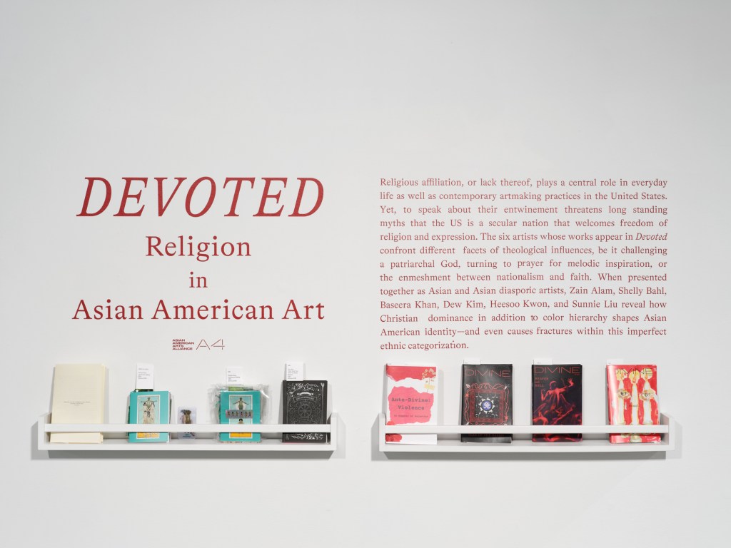 Asian American Arts Alliance is pleased to partner with EFA Project Space, a program of The Elizabeth Foundation for the Arts, to present Devoted: Religion in Asian American Art, a group exhibition on theological influences in work by Zain Alam, Shelly Bahl, Baseera Khan, Dew Kim, Heesoo Kwon, and Sunnie Liu. Whether practicing or non-practicing, the featured artists draw upon tensions arising from making work as Asian Americans in the context of the United States as a de facto Christian nation.
